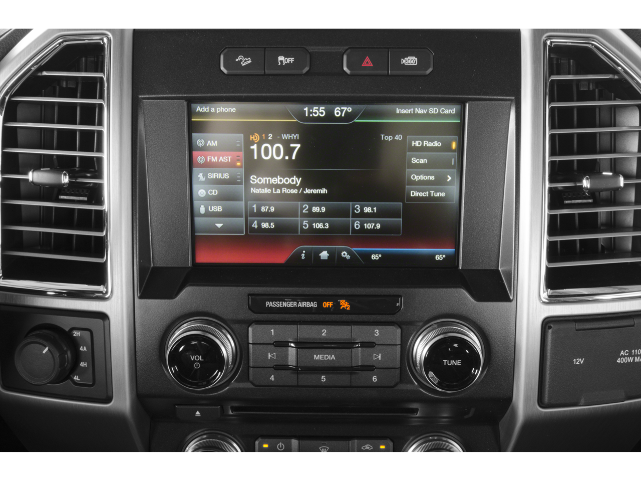 4WD, ABS brakes, Alloy wheels, Compass, Electronic Stability Control, Front dual zone A/C, Heated door mirrors, Heated front seats, Heated rear seats, Illuminated entry, Integrated Trailer Brake Controller, Low tire pressure warning, Navigation System, Remote keyless entry, Traction control, Voice-Activated Navigation, 10 Speakers, 20 Polished Aluminum Wheels, 3.31 Axle Ratio, 4-Wheel Disc Brakes, Adjustable pedals, Air Conditioning, AM/FM radio: SiriusXM, Auto High-beam Headlights, Auto tilt-away steering wheel, Auto-dimming door mirrors, Auto-dimming Rear-View mirror, Automatic temperature control, Black Unique Multi-Contour Leather Bucket Seats, Brake assist, Bumpers: chrome, CD player, Class IV Trailer Hitch Receiver, Delay-off headlights, Driver door bin, Driver vanity mirror, Dual front impact airbags, Dual front side impact airbags, Exterior Parking Camera Rear, Front anti-roll bar, Front Bucket Seats, Front Center Armrest, Front fog lights, Front reading lights, Front wheel independent suspension, Fully automatic headlights, Garage door transmitter, Genuine wood door panel insert, Heated steering wheel, Memory seat, Occupant sensing airbag, Outside temperature display, Overhead airbag, Overhead console, Panic alarm, Passenger door bin, Passenger vanity mirror, Pedal memory, Power door mirrors, Power driver seat, Power passenger seat, Power steering, Power windows, Premium audio system: Sony, Radio data system, Radio: Sony Single CD w/HD & SiriusXM Satellite, Rain sensing wipers, Rear Parking Sensors, Rear reading lights, Rear seat center armrest, Rear step bumper, Rear window defroster, Security system, Speed control, Speed-sensing steering, Split folding rear seat, Steering wheel memory, Steering wheel mounted audio controls, SYNC with MyFord Touch, Tachometer, Telescoping steering wheel, Tilt steering wheel, Trip computer, Turn signal indicator mirrors, Variably intermittent wipers, Ventilated front seats, and Voltmeter.