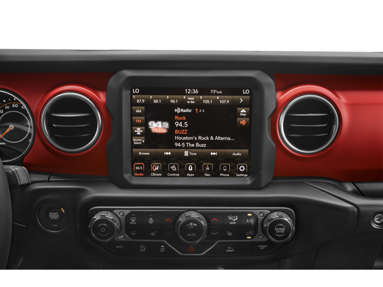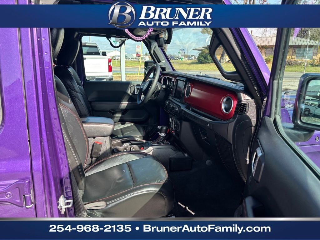 Quick Order Package 25R Rubicon, Xtreme 35 Tire Package (35 Tire Suspension, Anti-Lock 4-Wheel Disc Perf Brakes, Dana M210 Wide HD Tube Front Axle, MOPAR Hinge-Gate Reinforcement, Wheel Flare Extensions, and Wheels: 17 x 8 Beadlock Capable), 4-Wheel Disc Brakes, 9 Speakers, ABS brakes, Air Conditioning, Alloy wheels, AM/FM radio: SiriusXM, Apple CarPlay/Android Auto, Auto-dimming Rear-View mirror, Automatic temperature control, Aux Battery, Black 3-Piece Hard Top, Brake assist, Compass, Delay-off headlights, Driver door bin, Driver vanity mirror, Dual front impact airbags, Dual front side impact airbags, Electronic Stability Control, Emergency communication system: SiriusXM Guardian, Engine Oil Cooler, Freedom Panel Storage Bag, Front anti-roll bar, Front Bucket Seats, Front Center Armrest w/Storage, Front Differential Electronic Lock w/Axle Disconnect, Front dual zone A/C, Front fog lights, Front License Plate Bracket, Front reading lights, Fully automatic headlights, Garage door transmitter, Heated door mirrors, Illuminated entry, Integrated roll-over protection, Low tire pressure warning, MOPAR All-Weather Floor Mats, Navigation System, No Soft Top, Non-Lock Fuel Cap w/o Discriminator, Occupant sensing airbag, Outside temperature display, Panic alarm, ParkView Rear Back-Up Camera, Passenger door bin, Passenger vanity mirror, Performance Suspension, Power door mirrors, Power steering, Power windows, Premium Cloth Low-Back Bucket Seats, Radio data system, Radio: Uconnect 4C Nav w/8.4 Display, Rear anti-roll bar, Rear reading lights, Rear Window Defroster, Rear Window Wiper/Washer, Remote keyless entry, Security system, Speed control, Split folding rear seat, Steering wheel mounted audio controls, Stop-Start Dual Battery System, Tachometer, Telescoping steering wheel, Tilt steering wheel, Traction control, Trip computer, Variably intermittent wipers, Voltmeter, and Wheels: 17 x 7.5 Machined/Painted Black.